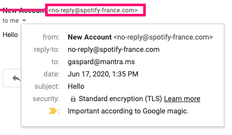 Ne pas se fier au nom de l'expéditeur ou à l'adresse mail affichée,